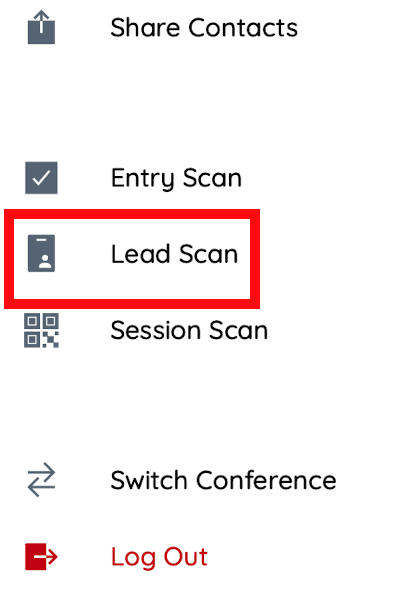 To Scan leads, click on the hamburger menu at the top right of the screen