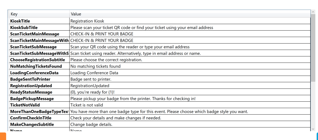 With our software now being used in many countries, customers have asked for better regionalized support for languages and terminology. With this release, you will be able to customize all button and message text the kiosk will display to the attendees including warnings, successes, and errors.